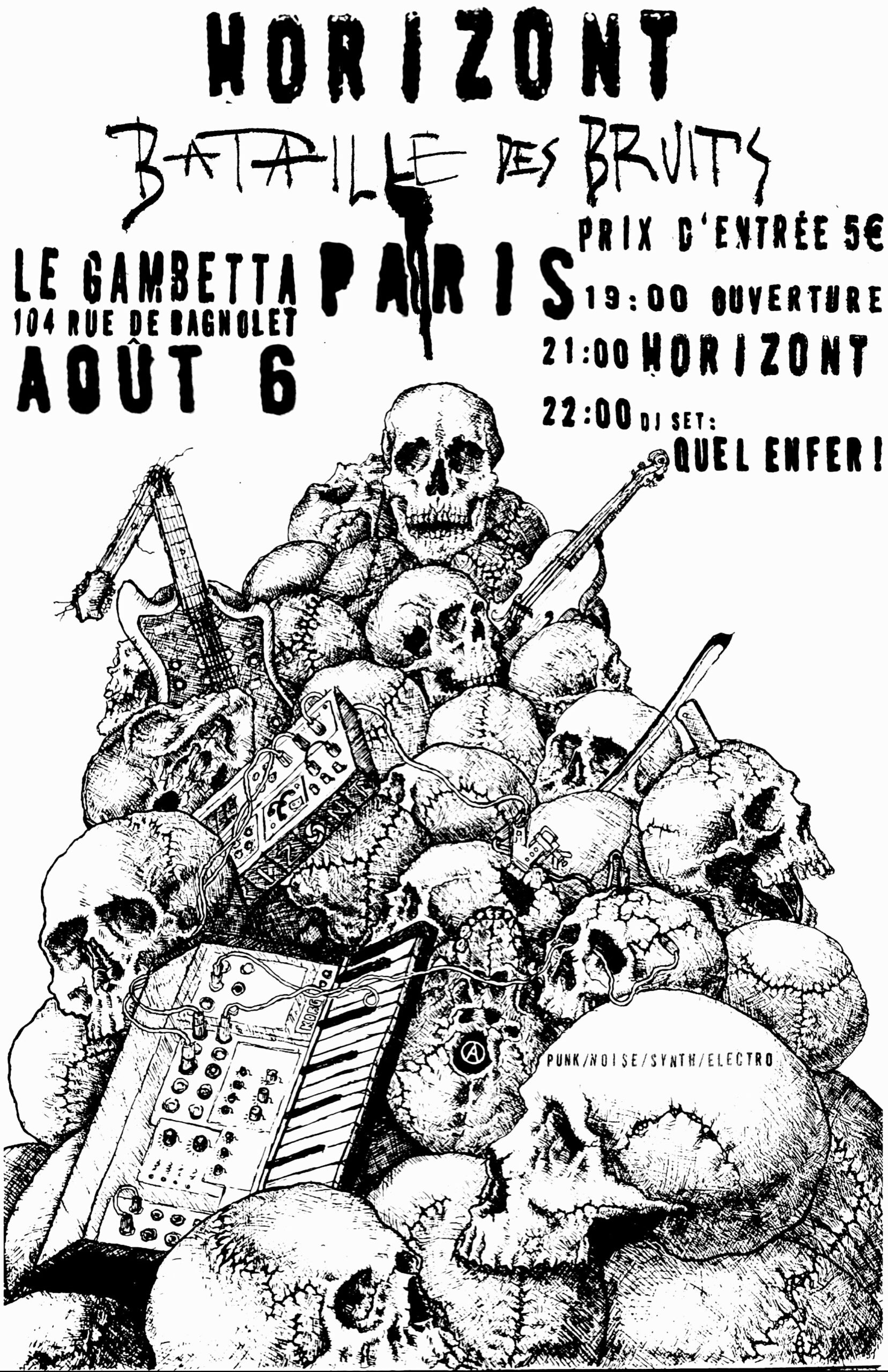 Die Konzertreihe SCHALLSCHLACHT startete in Paris, wo vier Mitwirkende den Sound der HORIZONT-Performance prägten. Im Anschluss gab es ein DJ-Set von Quel enfer!.